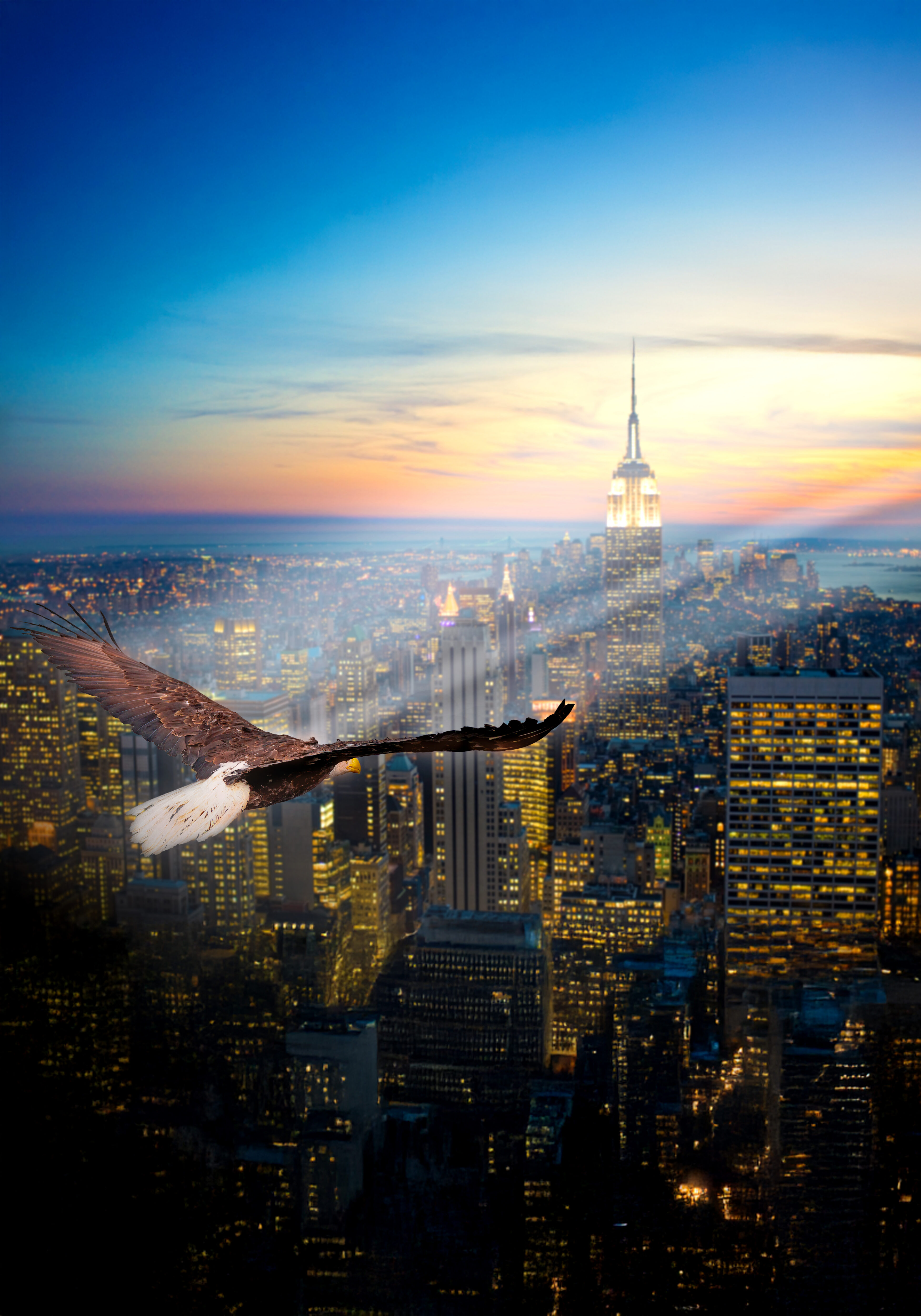 L’aigle s’inspire de la lueur de la ville.